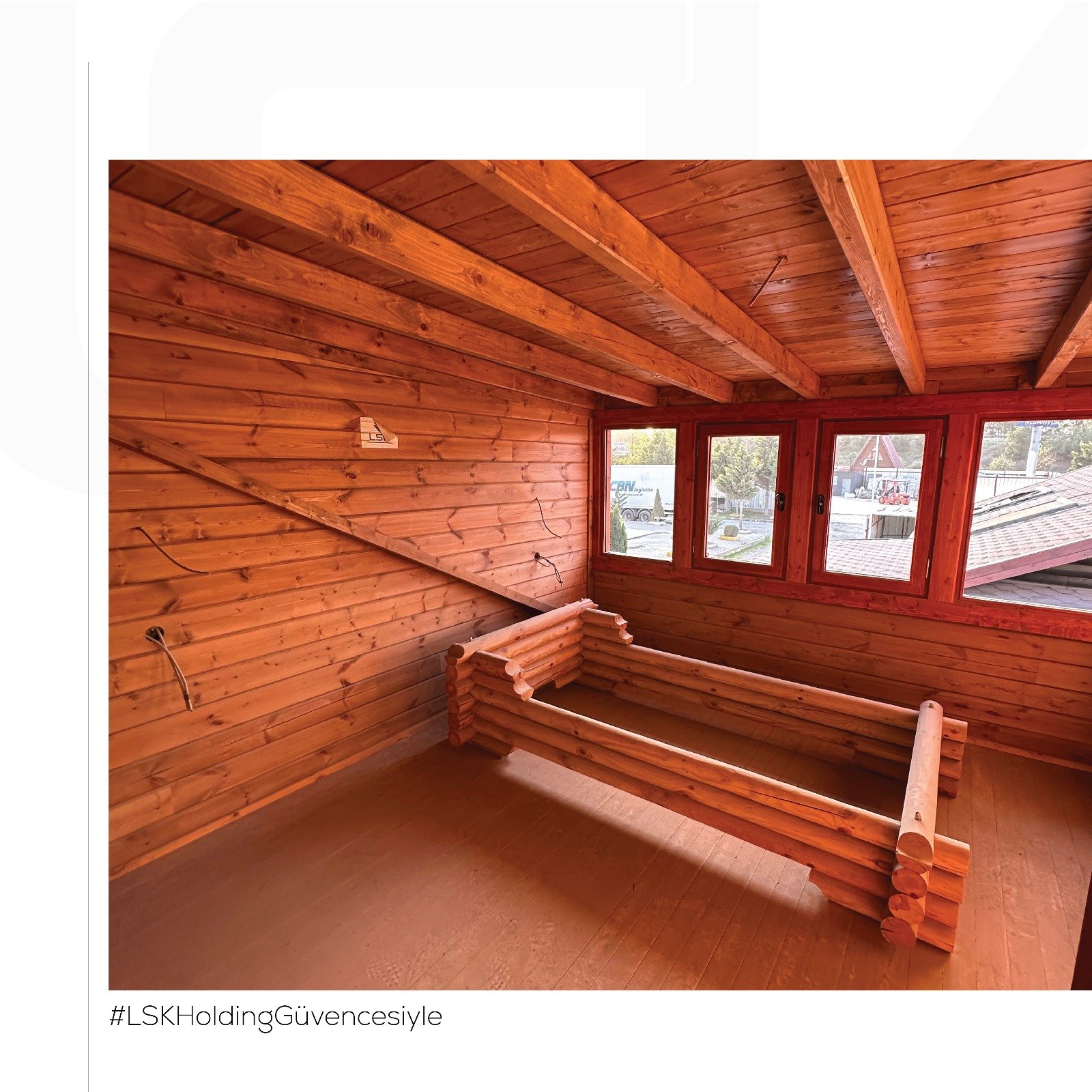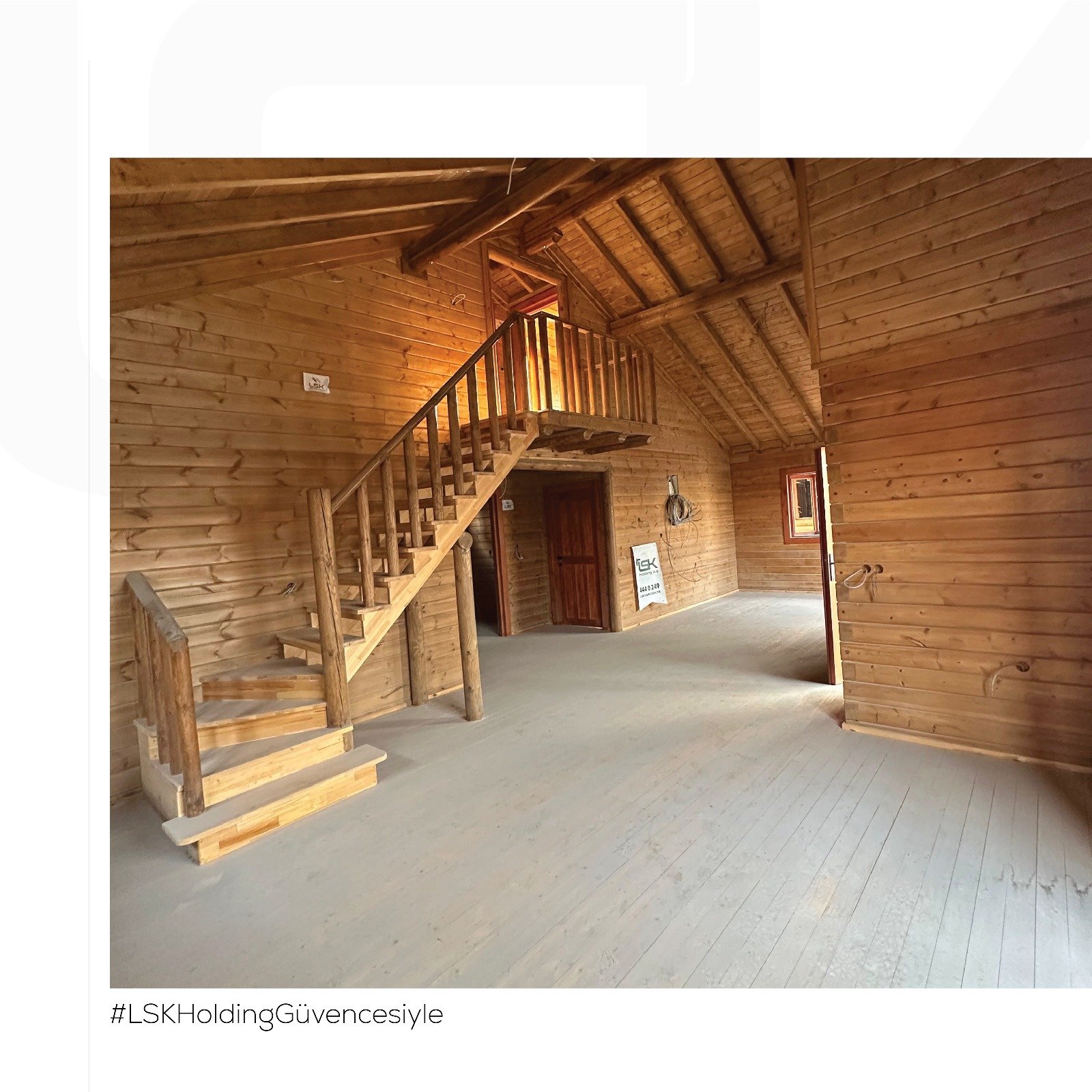 Fiyata dahil olanlar: tüm numaralanmış ahşap duvarlar, zemin ahşabı 18 mm rabıta, çatı ahşap makas ve mahyası, çatı lambrisi.