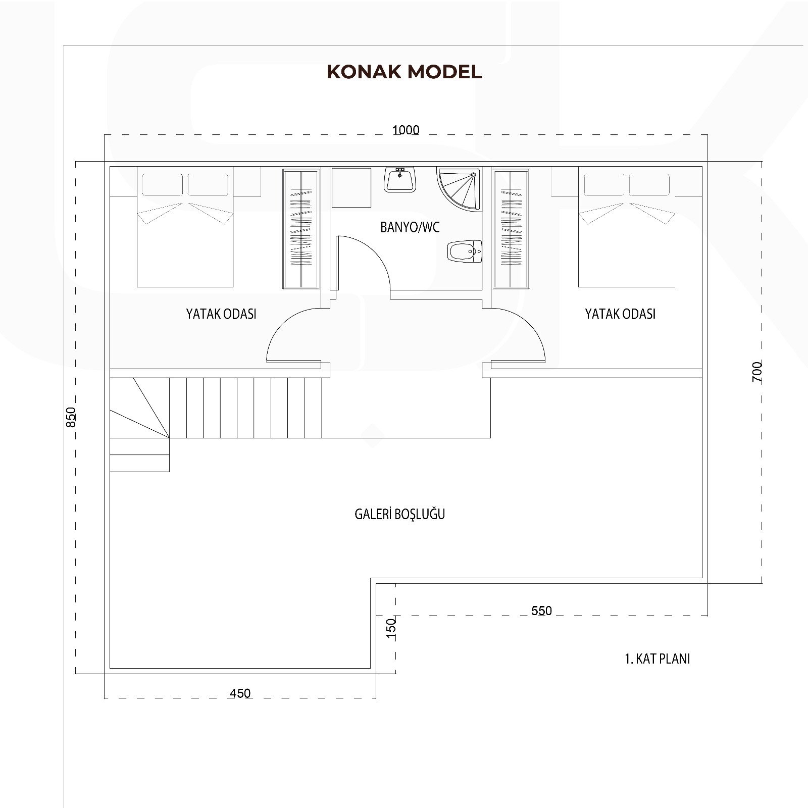 Konak model ahşap evimiz, dubleks ve 4 + 1’dir. Verandasıyla birlikte toplam 133 metre²’dir. 45 mm ahşap duvarlar kurtboğazlı geçmelidir.